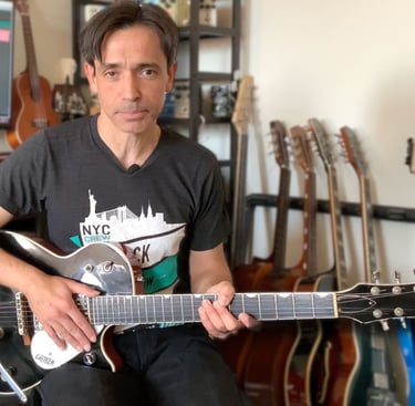 This guitar is my favorite for live shows and recording. It has TV Jones PowerTron pickups and a Bigsby bridge, which affects the feel of the strings.